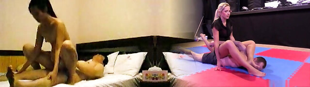 Lovely slender tight Asian masseuse Jam rides manmeat during massage