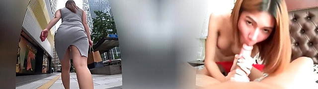Quite sexy Thai superslut Puy flashes hairy beaver and gets hammered it