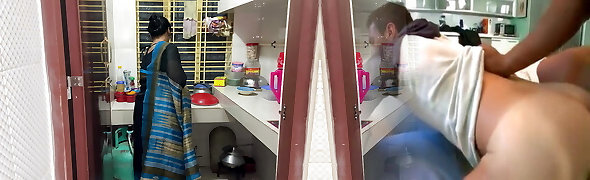 I saw my aunty cooking alone in the kitchen, I hugged her and embarked banging