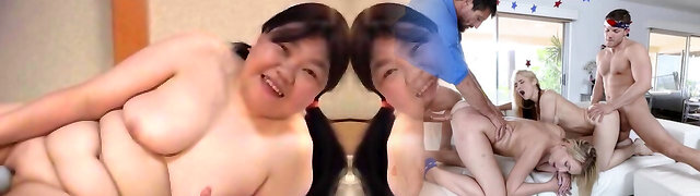 Eva Yi - 2 Hot Asians Get Fucked By Fat White Cock. Facial Cum