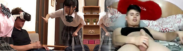 My stepbrother was Jerking off in VR. I got horny as I eyed his cock getting bigger...