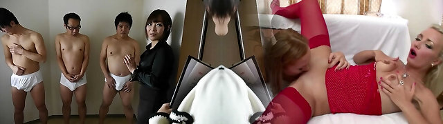Asian slut in underwear inhales several cocks before being cag