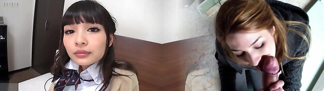 Nice Japanese teen with tied up palms Riisa Minami gives her head on a point of view camera