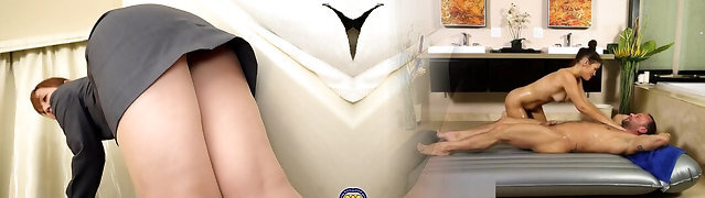 Erotic back massage makes a sweet honey horny for his large pink cigar