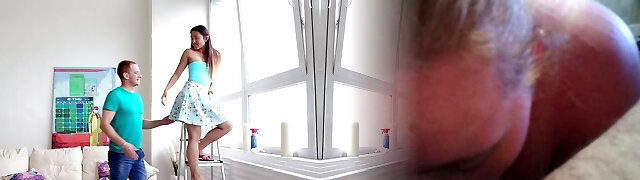 I fucked Alena's tight pussy without taking off my undies and finished inside