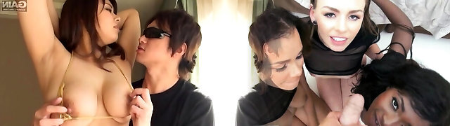 While her huge tits are rubbed the lovely Japanese chick gets a