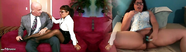 Desi Indian Cougar Secretary with Glasses give at Fuck and Feet Wank to her old Boss