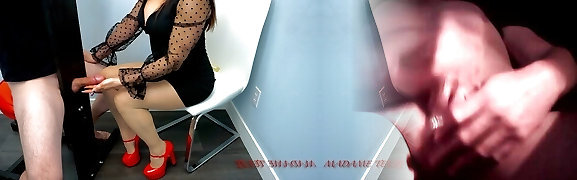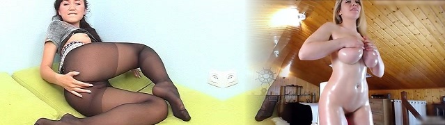 Fabulous Russian redhead dame on the couch poses in dark-hued nylon pantyhose