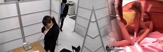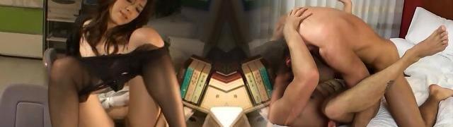 Raunchy day at work made more bearable by uber-sexy 3 way with Rina Mayuzumi - an impressive Asian xxx doll!