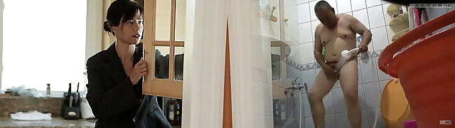 Son surprises his asian stepmother while she was masturbating in the bathroom