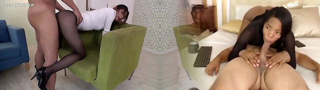 Asian HORNY BABE TEARS UP HER PANTYHOSE TO RIDE A Phat