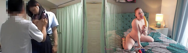 Kinky doctor studies cute Japanese schoolgirl cooter and tits