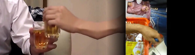 Japanese milf slut gives her pussy to her husband's coworker at dinner time!