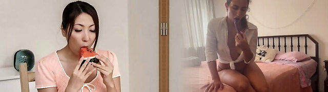 Japanese housewife Rina Ishikawa makes use of cucumber for self gratification