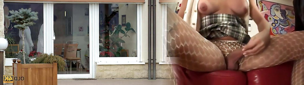 OLD4K. Tempting brunette lured by Girlfriends elderly parent inside