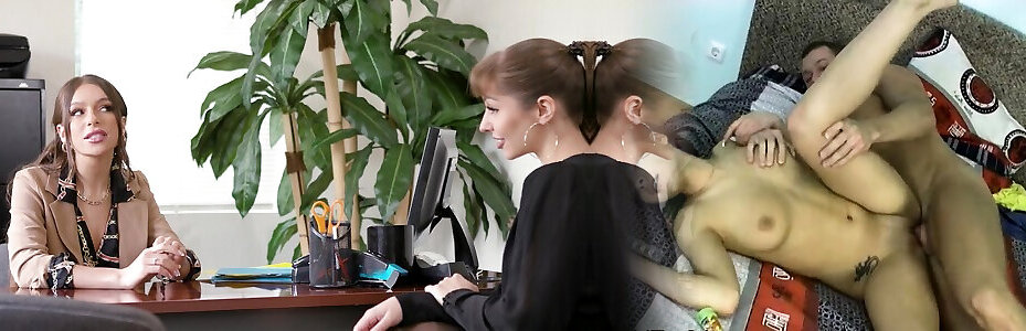 Hot ass April Olsen and Tommy King have lesbian sex in the office