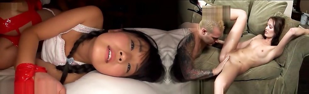 Lil Asian babes strapped up and 3some by 2 dude