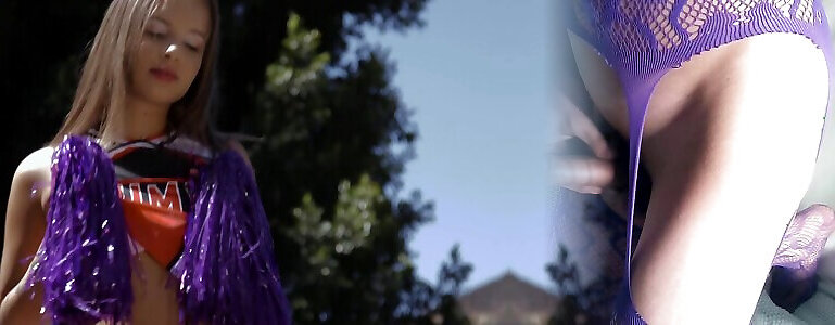 Naughty cheerleader Liza Rowe drops her uniform for a black dick