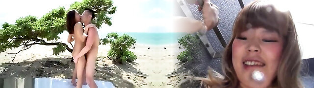 Fuck-a-thon on the beach along sleazy Hina Maeda