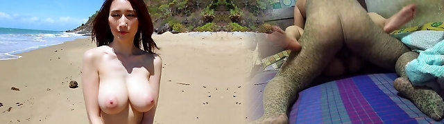 Ample tits Asian GF fucked after beach day