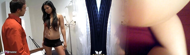 A petite Thai girl came to the hotel guest room and rode a fat dick!