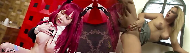 Asian lesbian makes her platinum-blonde friend go limp and plays with her bod