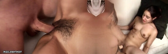 Asian teen gets her hairy twat screwed by black and white guys