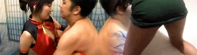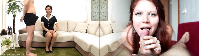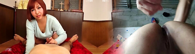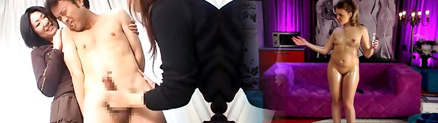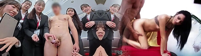 Japanese Femdom Strap Dildo Dominatrix Fucks and Gives CFNM Handjob