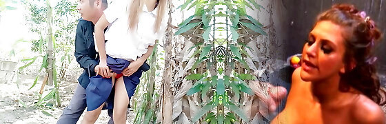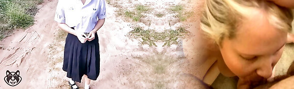 Fuck Thai Teen 18+ Asian Student in uniform hand-job oral pleasure then get fuck cum on skirt