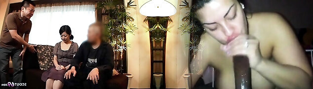 Japanese couple talk to Creampie Pummel the wife while husband have to watch