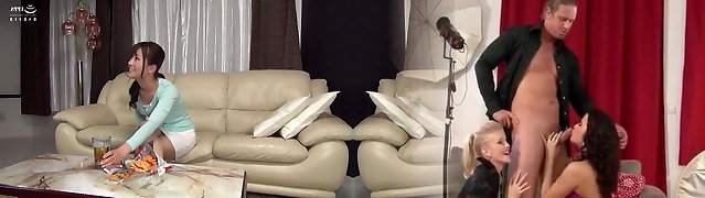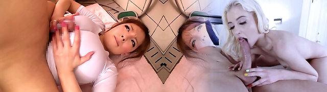 Miho Tsujii cheerfully deep throats manmeat while being smashed, flashing her tatted bod and stockings in a hardcore 3 way - a uber-sexy Asian po