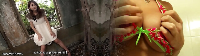 Pretty and natural girl Hiromi flashes her tight hooters during tender solo