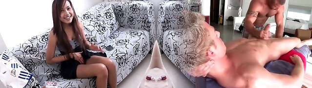 Innocent Thai teen blowjob and amateur orgy on camera with a much older dude