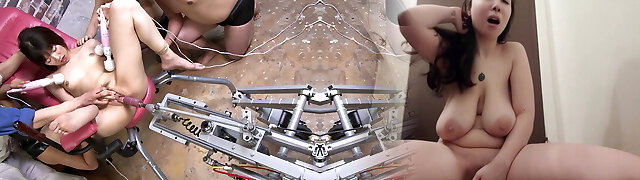 Japanese nymph gets the full pussy service incl. poke machine and bondage
