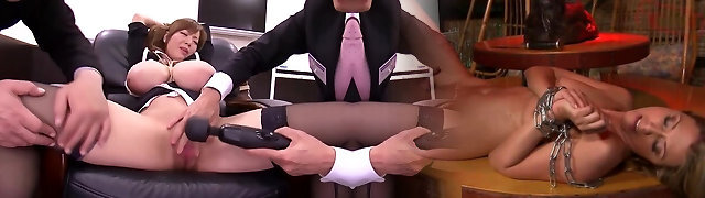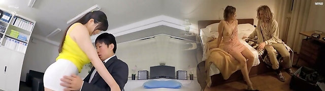 Slim Japanese female Boss seduce three worker to Gang Fuckfest in Office
