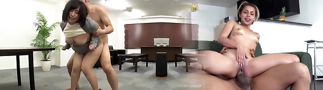 Awesome Japanese milf Chihiro Akino takes a creampie from her stud and pridefully flashes her incredible orbs - Asian porn at its greatest!