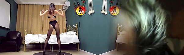 Dance in pantyhose and high-heeled slippers 114
