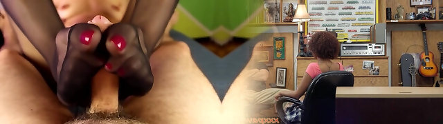 Office Lady In Pantyhose Rubbing Skinny Fellow Cock With Her Ass And Honeypot But