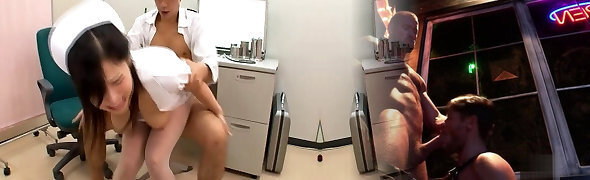 Super-steamy Chinese nurse lets a fellow grope her ass before sex