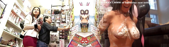 Amazing Asian MILF gets massaged and jizzed on in public