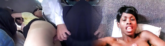 Stellar Asian babe with a hairy pussy enjoying a hardcore MMF threesome on a bus