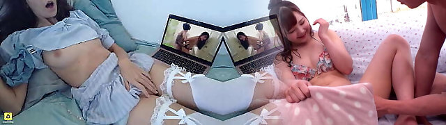 Three naughty Asian schoolgirls seduce two teachers one by one