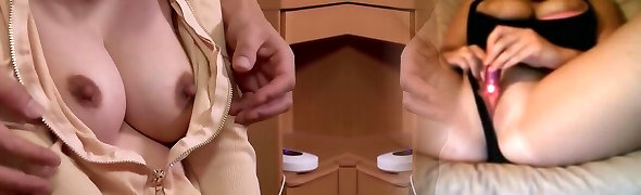 Busty babe gets dildo foreplay before banging dude