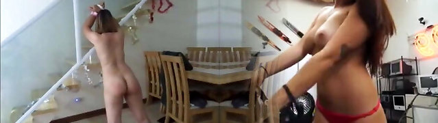 Lesbian army girls pick outfits and get sexually aroused as they take out their dual ended fake penis to fuck