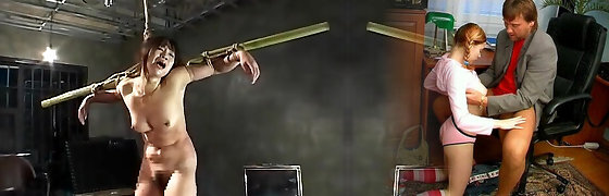 Japanese Sub Caned and Tied Up with Barbed Wire