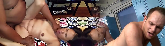 Young Japanese schoolgirl does her first anal squirting before rock hard three way ass fuck