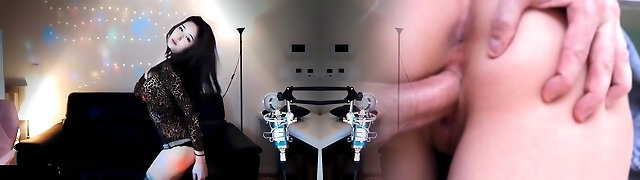 Asian babe teases and strips to fuck her tight caboose on webcam!