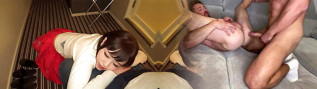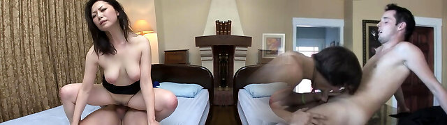 Curvaceous unfaithful Asian woman fucks in front of her cuckold spouse
