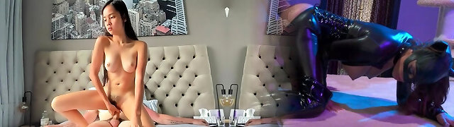Delightful Asian brunette loves casual sex in a doggy style position, in front of the camera